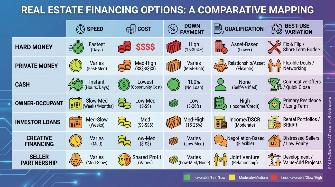 Conventional investor loans: Lower rates than hard money, but slower and may penalize early payoffs.