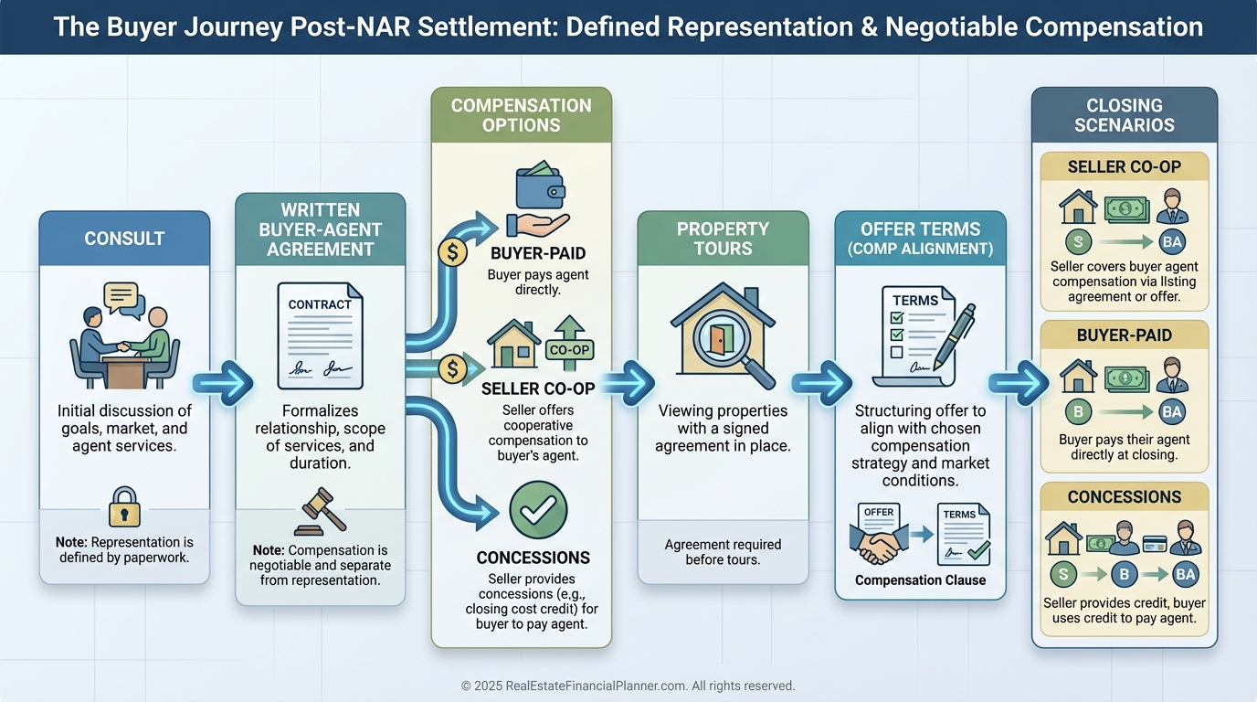 Most markets now require a written buyer‑agent agreement before you tour homes, with clear, objectively ascertainable compensation.