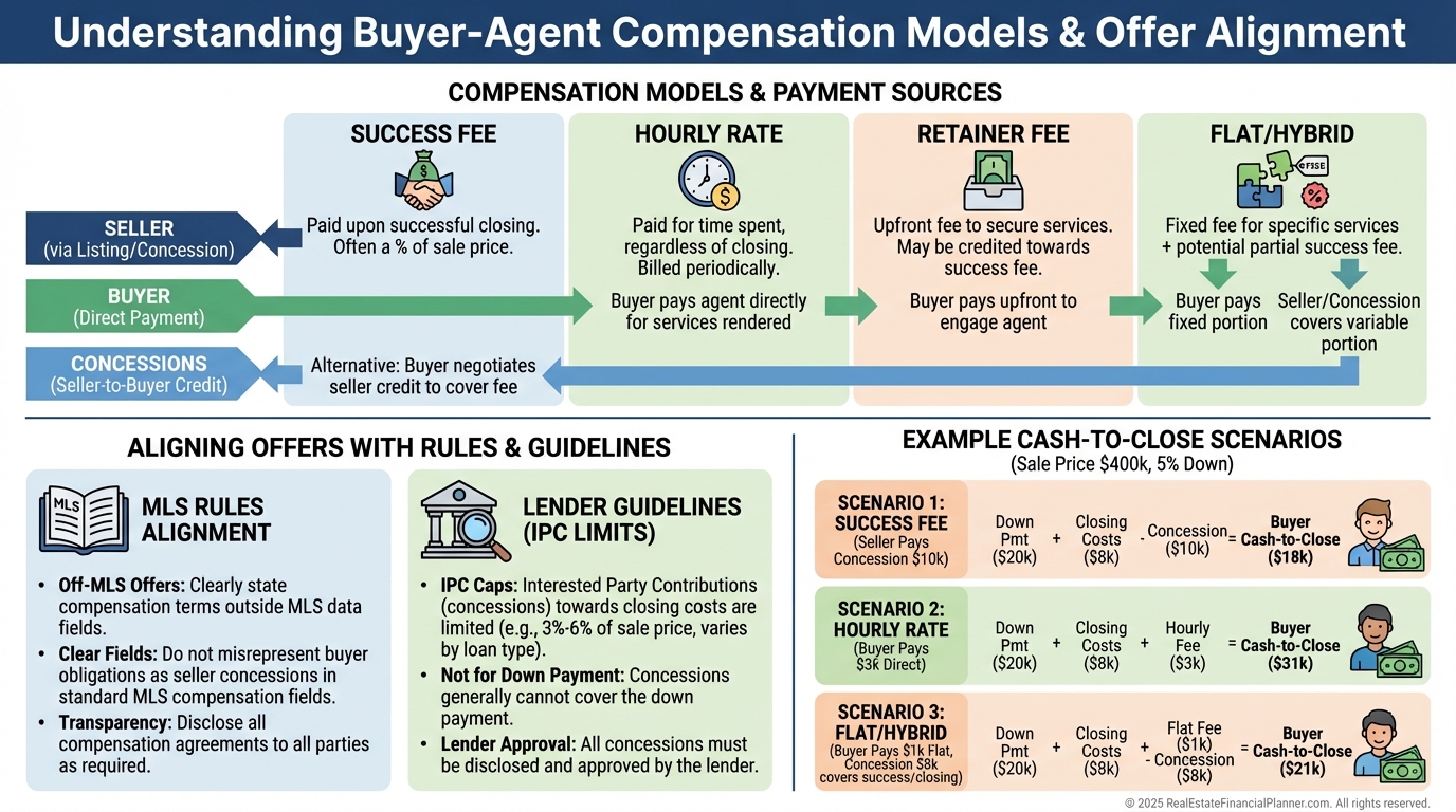 Align your buyer‑agent agreement, compensation, and lender path before touring.