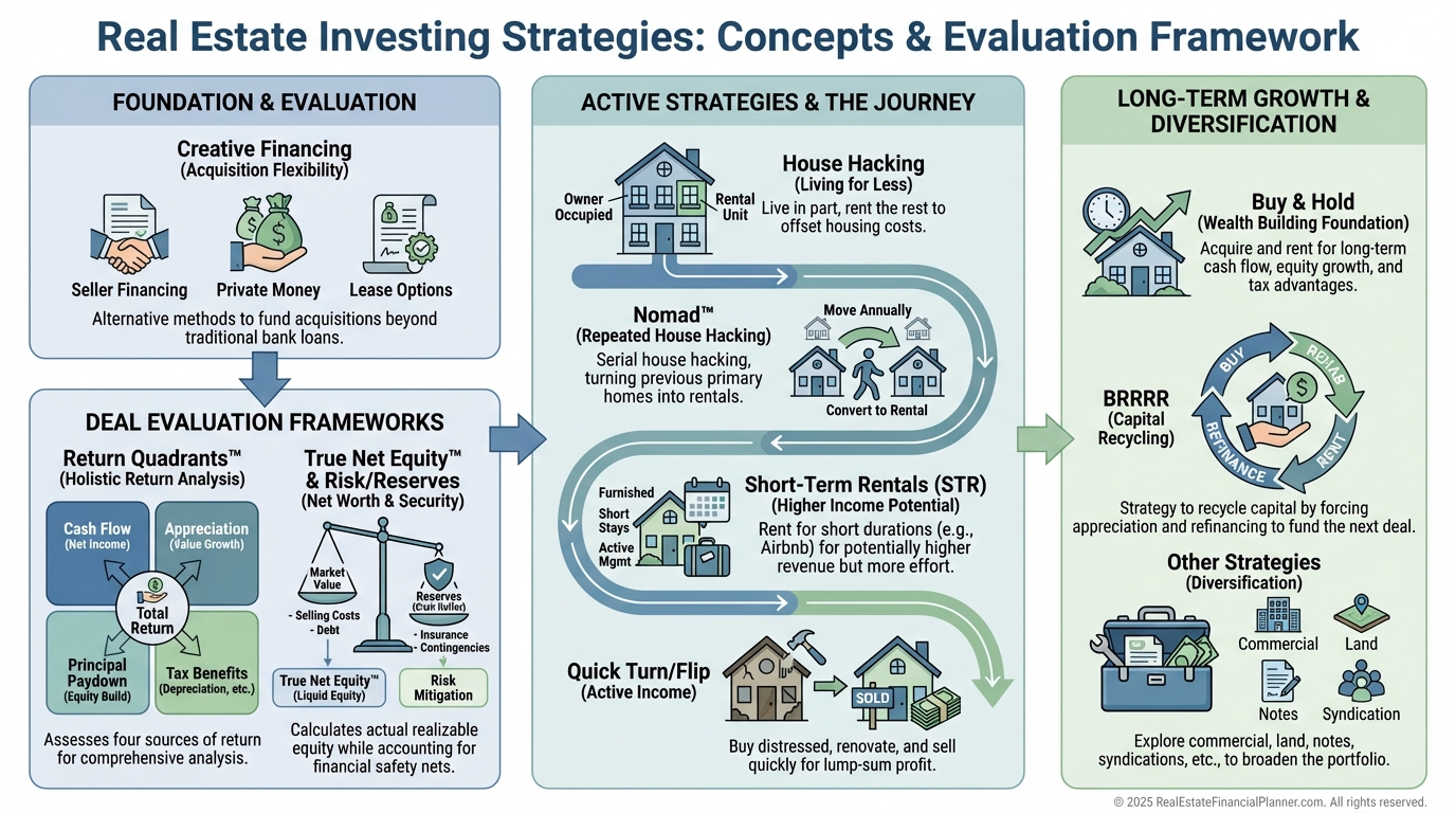 Finally, I match the strategy to your capital, credit, time, and skill so you’re not forcing a square peg into a round market.