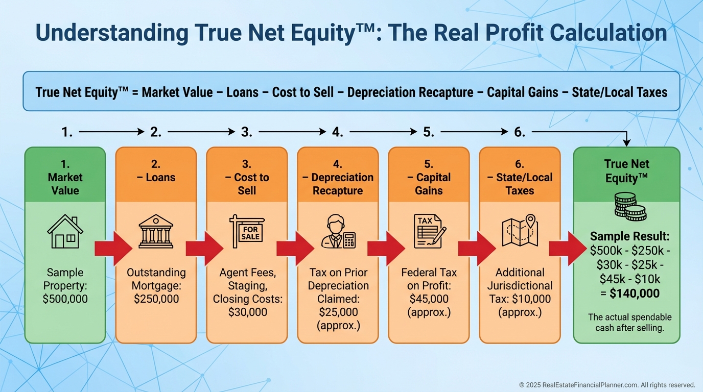 Then I sanity-check True Net Equity™ at exit to make sure taxes and selling costs do not erase your win.