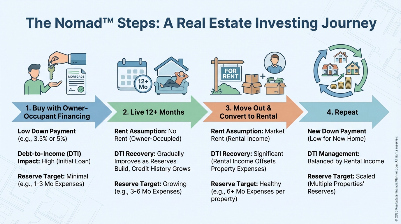 Live in a home one year to access owner-occupant financing, move out, keep it as a rental, and repeat.