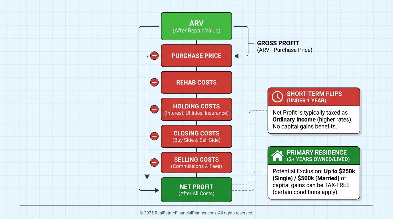 Live-in flips reduce holding risk and, if you stay two years, can benefit from the primary residence exclusion.