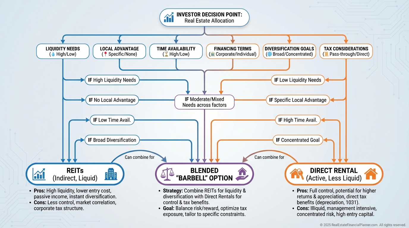 Hold hands-on properties where you have edge, and use REITs for breadth, balance, and cash flow smoothing.
