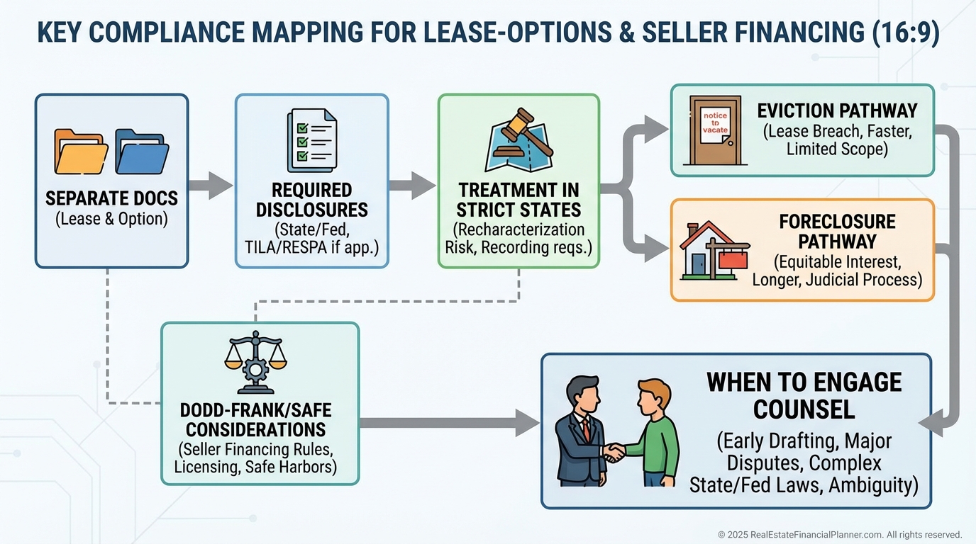 Laws vary by state, and courts may recharacterize deals if you blur lease and sale.