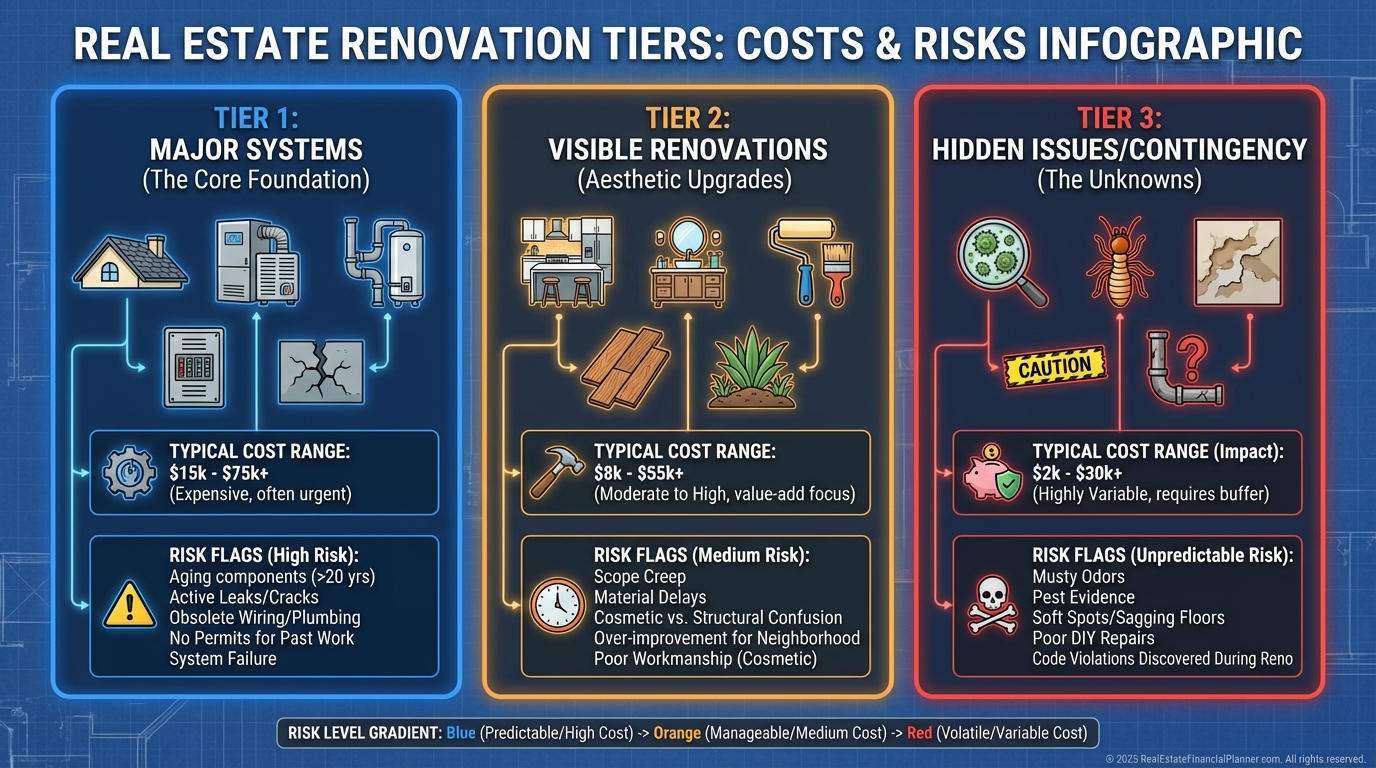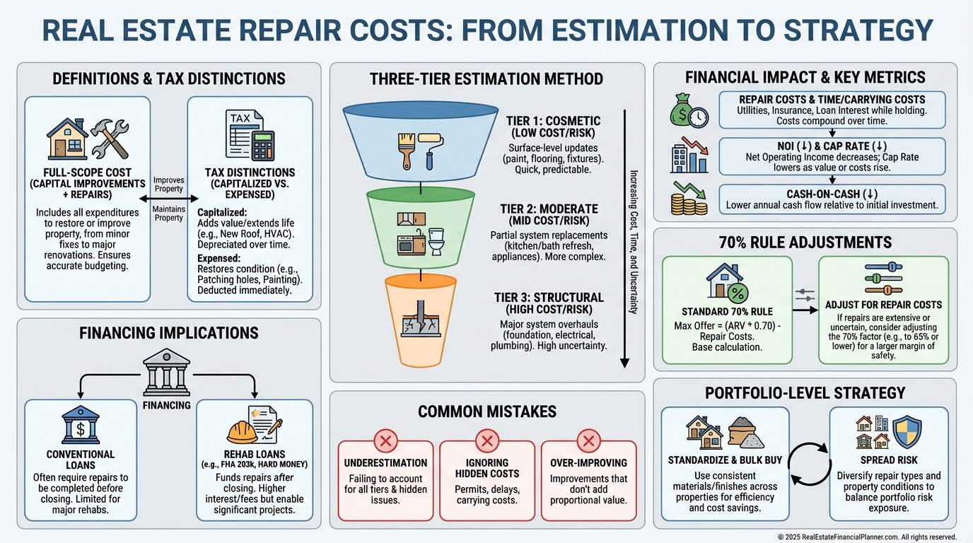 I break repairs into three tiers and assign ranges before I ever write an offer.