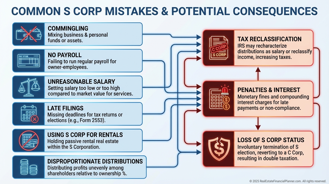 Keep rentals in LLCs, keep services in your S Corp, and keep records clean.