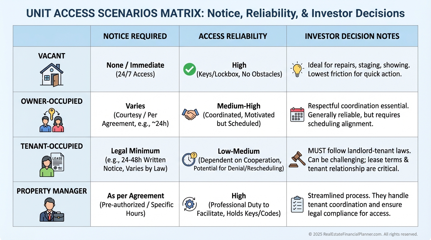 If the quick math looks good, move to an offer, often with an inspection window that secures full access to all units and critical areas.
