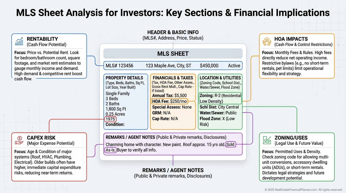 I read the remarks, zoom in on photos, research location quirks, and run a fast pass with The World’s Greatest Real Estate Deal Analysis Spreadsheet™.