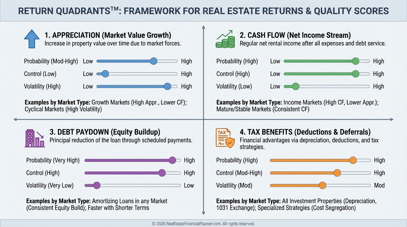 In low cap rate markets, I teach clients to lean on Debt Paydown and Tax Benefits while negotiating terms that protect Cash Flow.