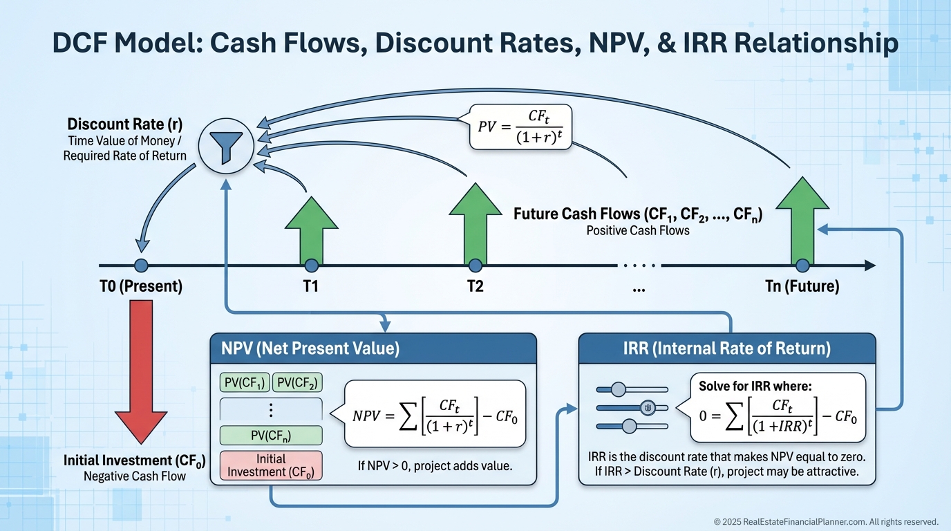 Discounted Cash Flow (DCF) is the framework appraisers and institutions use to price income property today.