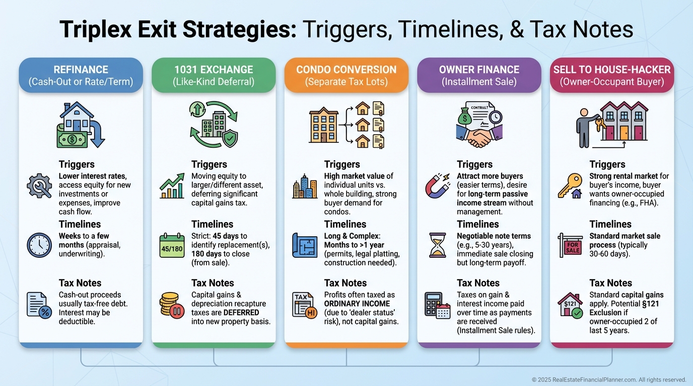 If you plan to syndicate later, document your triplex track record. Lenders and investors love to see consistent NOI growth and clean management files.
