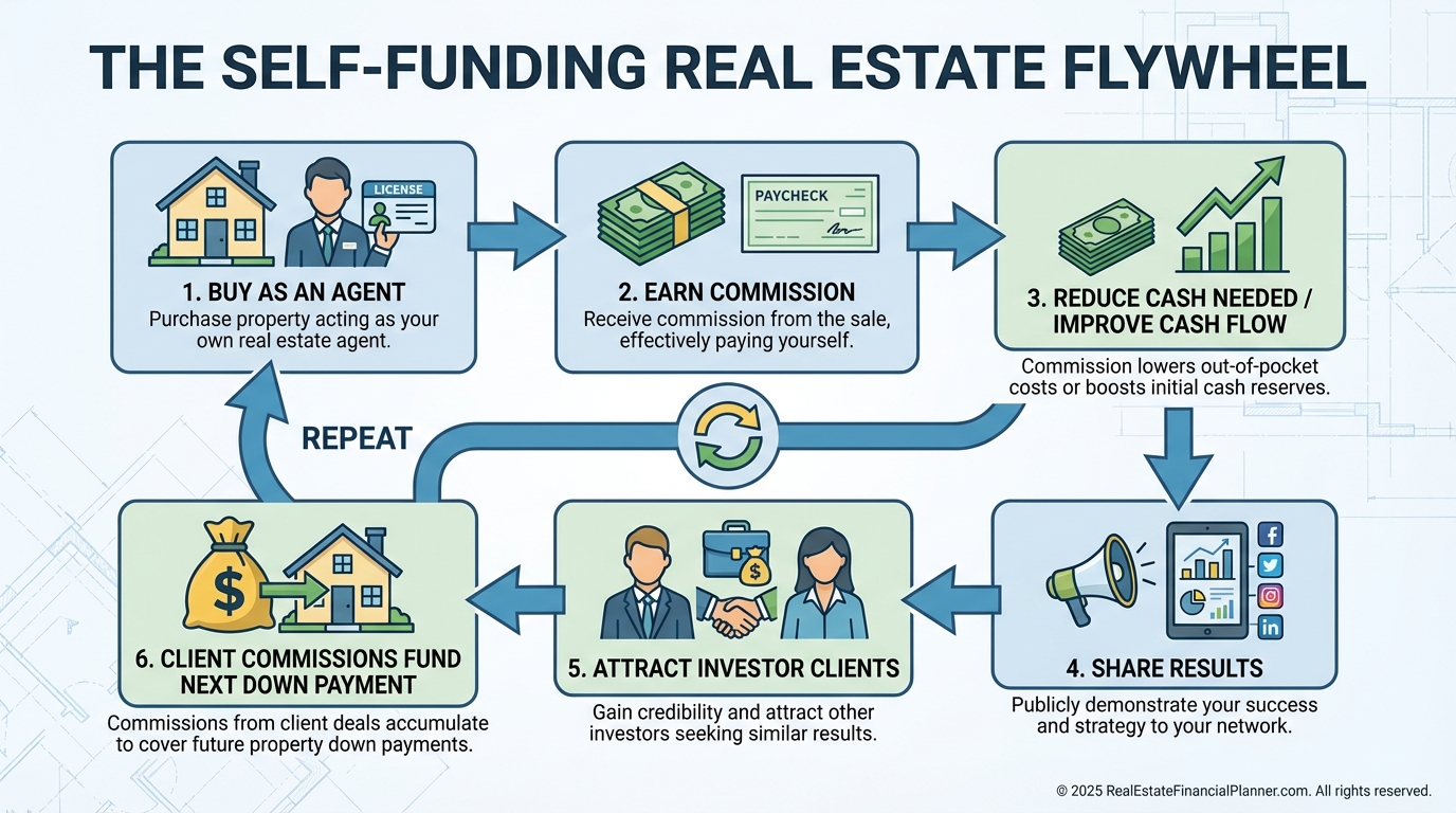 Agent-investors redirect earned commissions to close gaps, shorten timelines, and improve cash-on-cash returns.