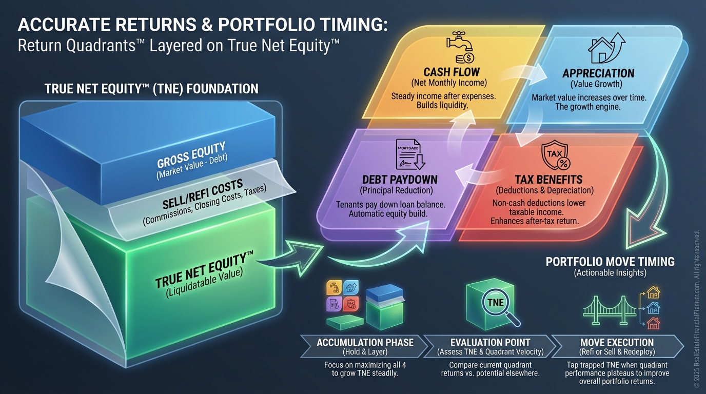 When the return on True Net Equity™ drops, I consider a 1031, a sell-and-upgrade, or a rate/term refi.