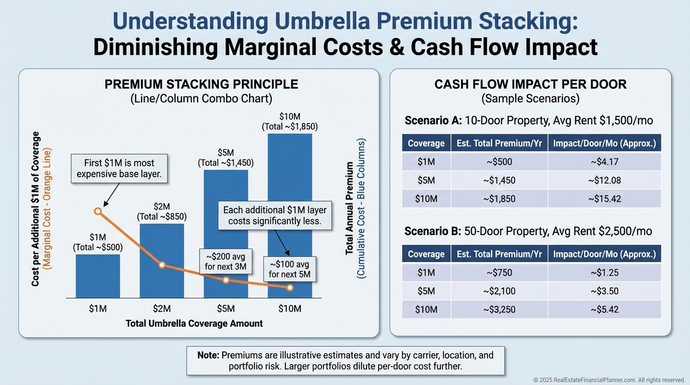 Umbrella policies are the cheapest way I know to cap portfolio-ruining tail risk.