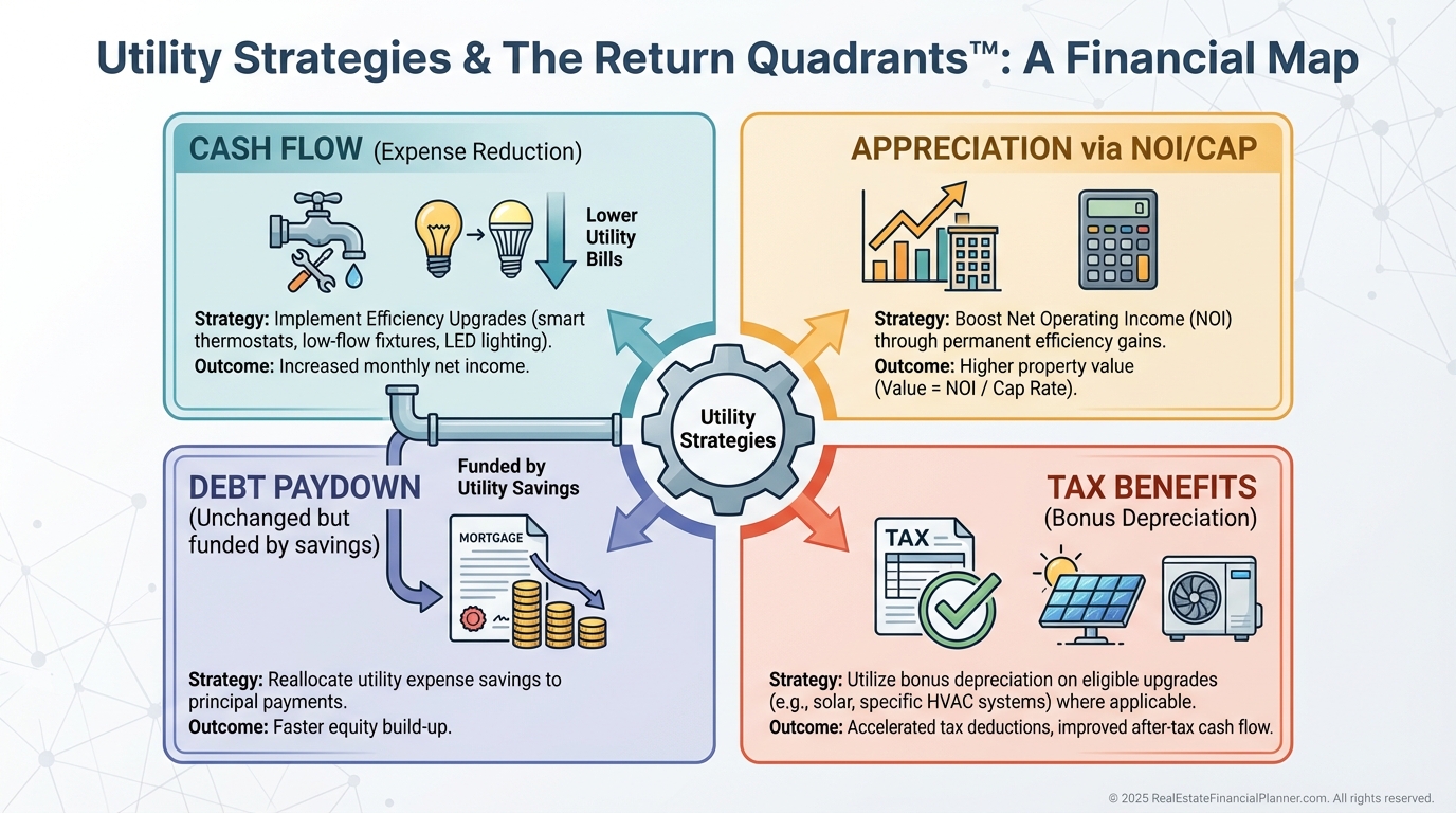 In Return Quadrants™, utility savings show up primarily in the Cash Flow quadrant.