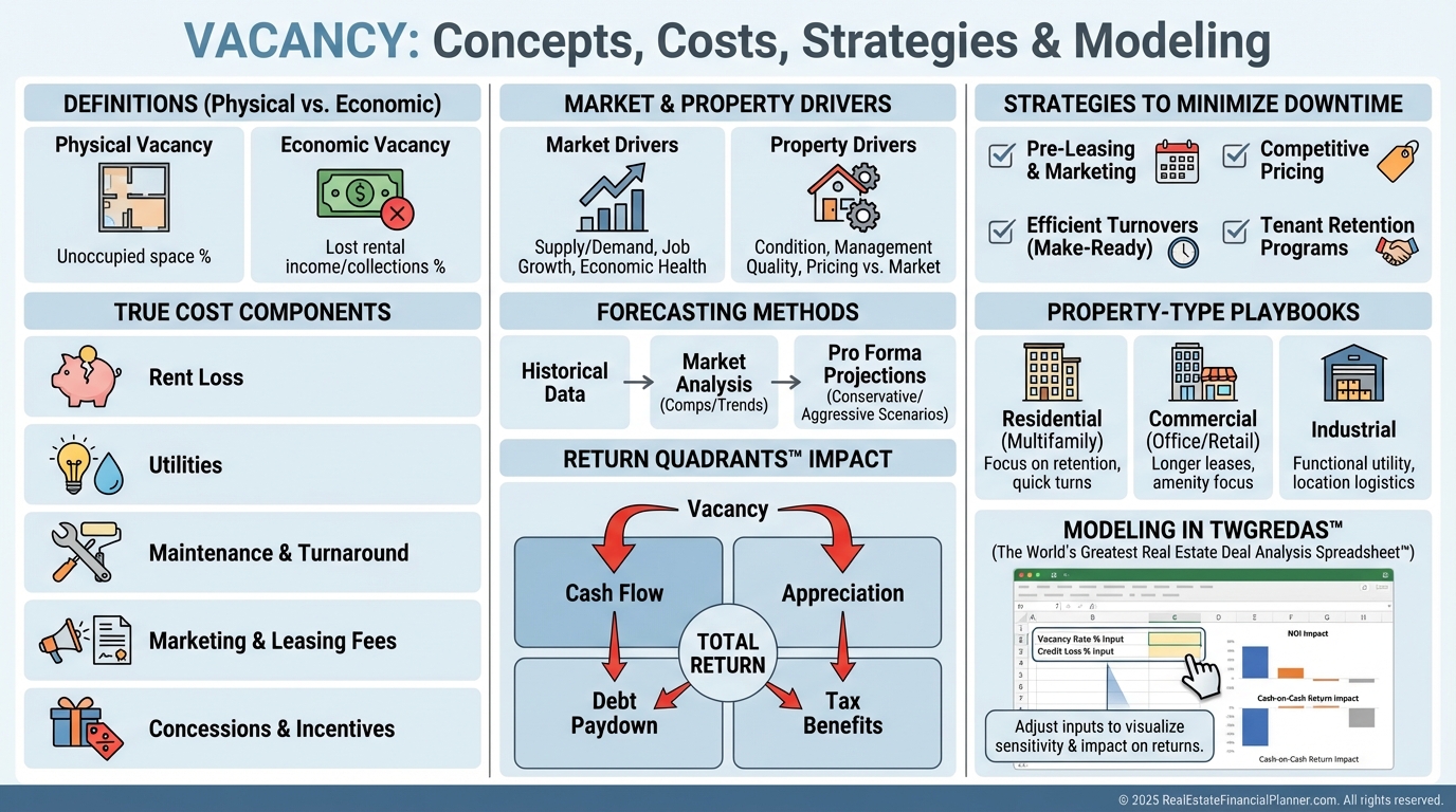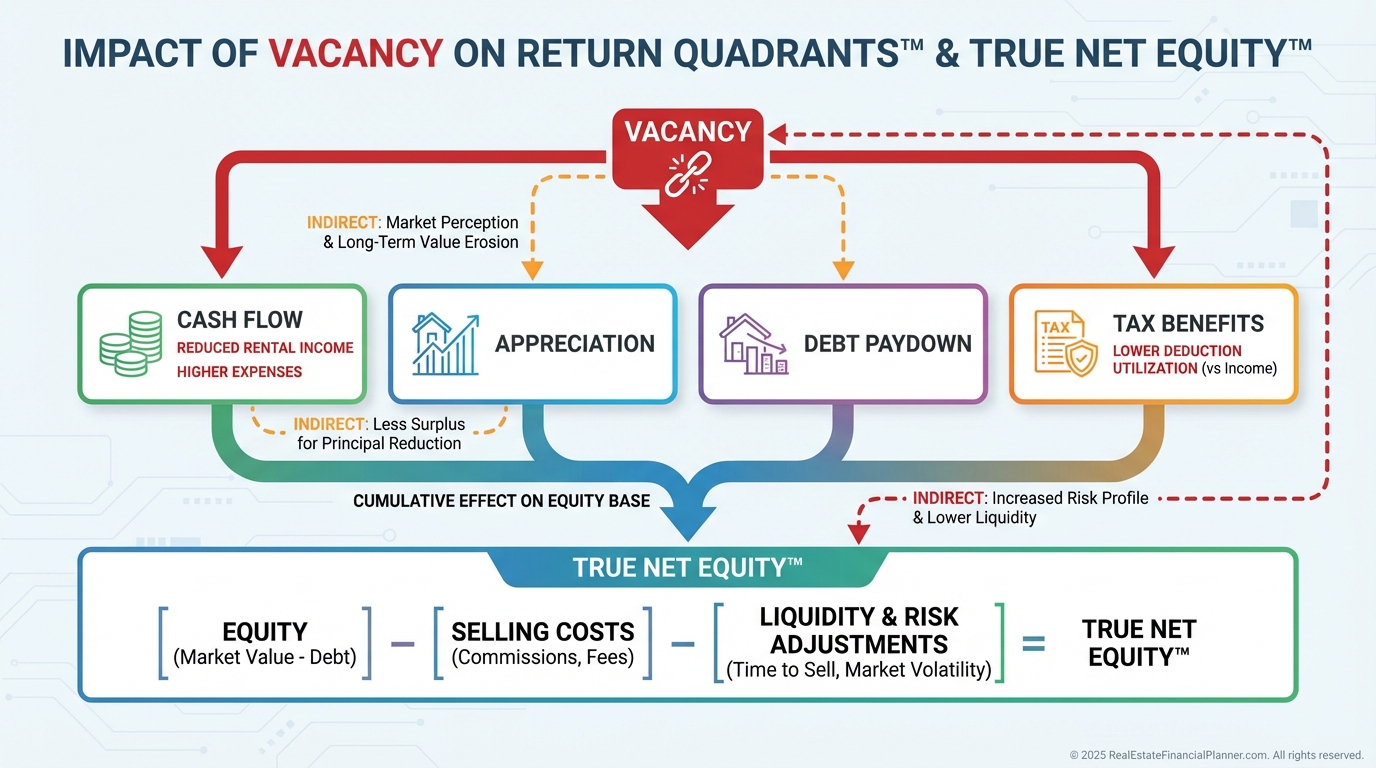 When I coach clients, we model Return Quadrants™ with vacancy applied to cash flow and stress-test reserves in True Net Equity™ to reflect real survivability.