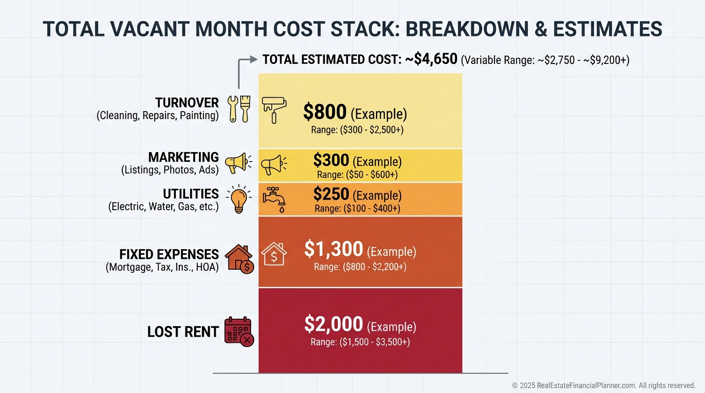 One month dark on a $2,000 unit isn’t just $2,000 lost; it’s lost income plus ongoing expenses plus turnover costs that can double or triple the hit.